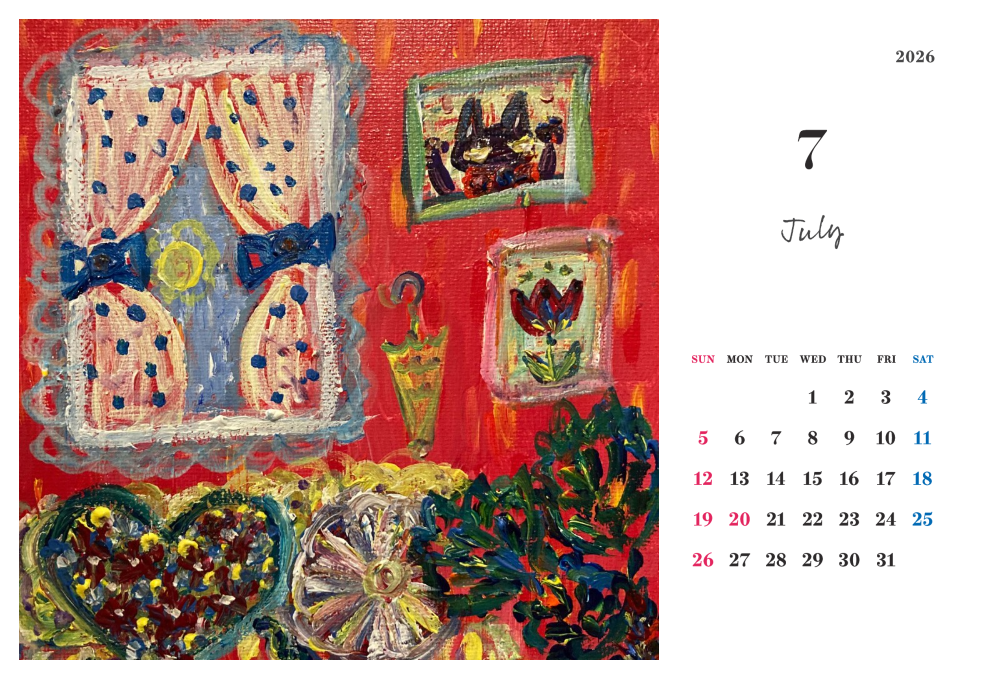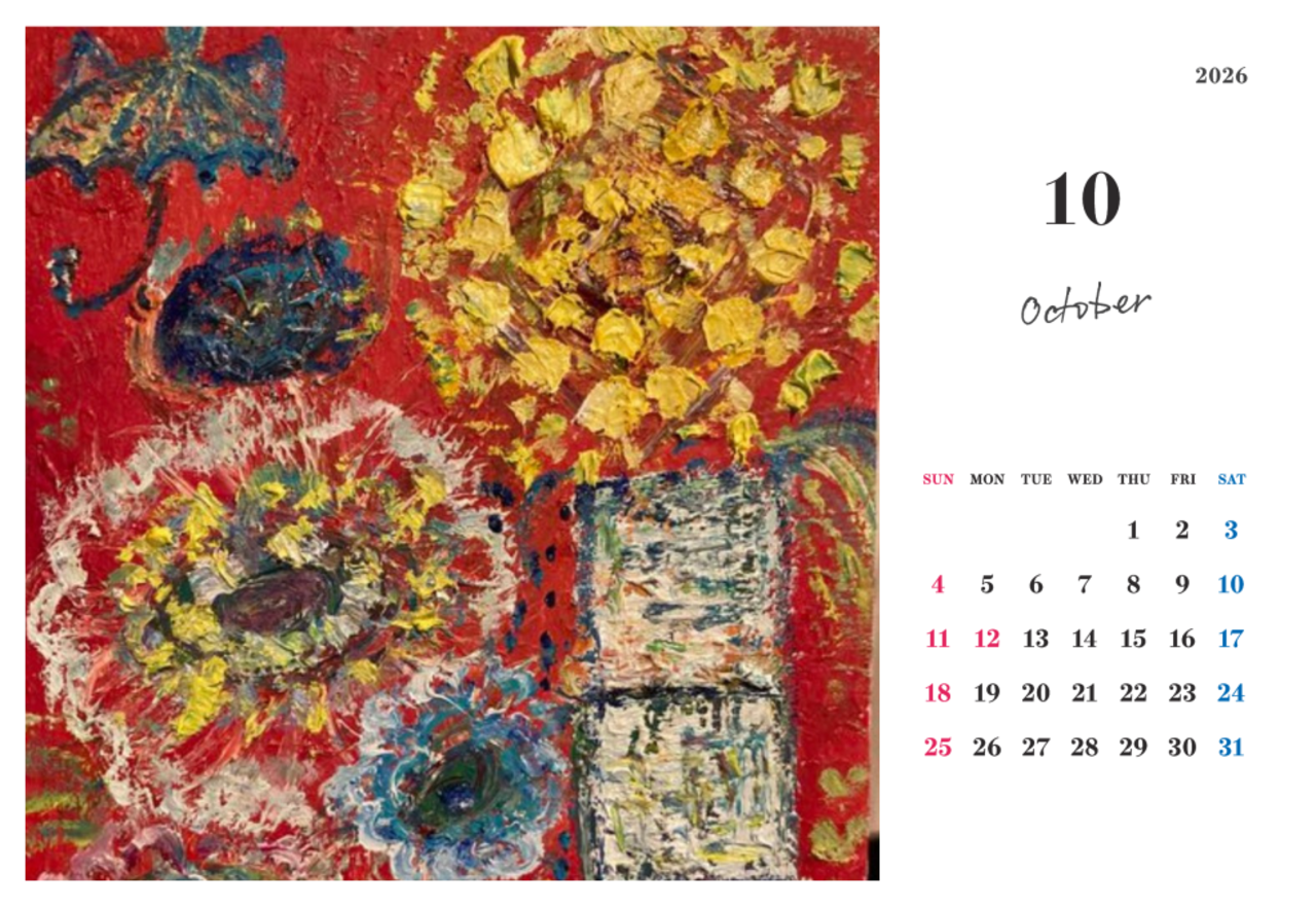 月ごとに変わる絵は、季節のリズムや心の動きを映し出すように、やさしく、時に力強く語りかけてきます。 スッキリとしたスタンドタイプのポストカードサイズで、日々の暮らしの中に静かな芸術の灯をともしてくれる一冊です。